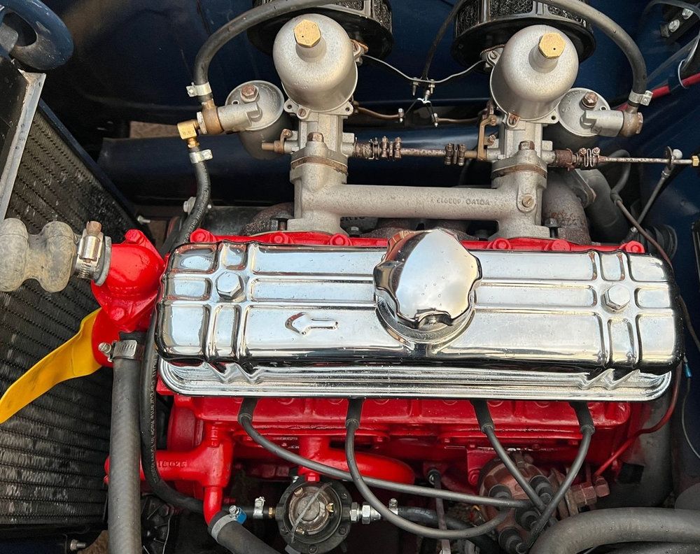 The vehicle was brought to Sweden, refreshed, and later fully repainted in 2014 in its original Midnight Blue. During reassembly, the engine was removed for inspection and minor overhaul. It showed excellent compression and condition, with refurbished carburetor and radiator, new hoses, seals and a full service.