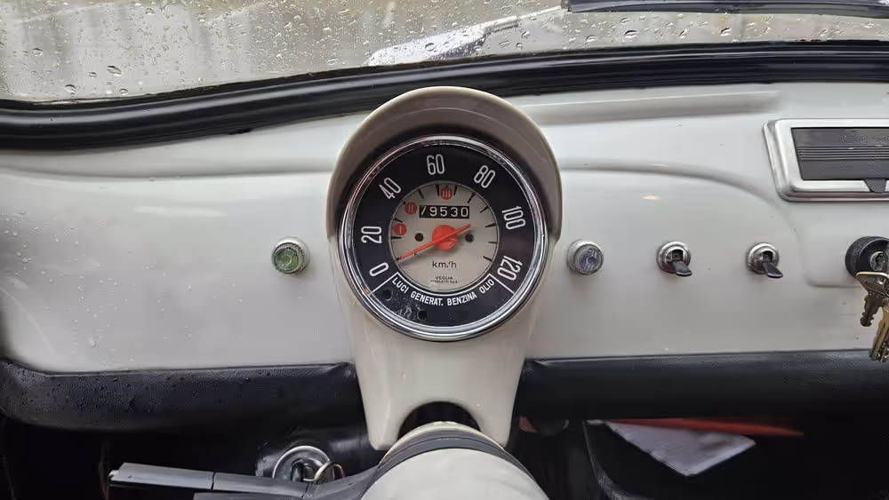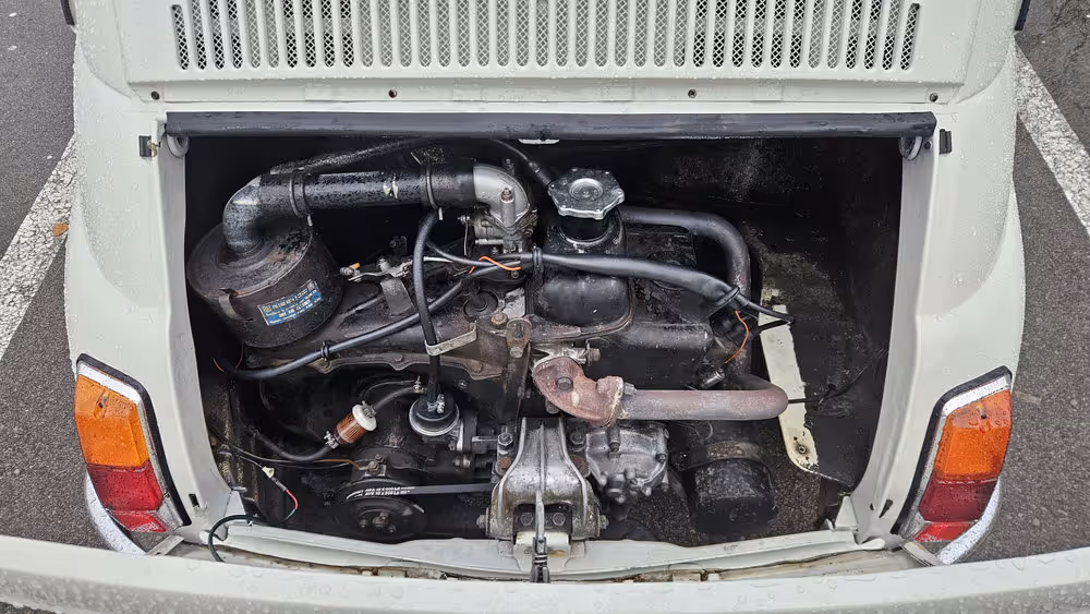 According to the owner, the car underwent welding and paint restoration in 2024. It was repainted in its original colour using acrylic paint. The engine has been serviced with a tuned carburettor, new fuel lines and filter, adjusted valves and ignition points, fresh oil, a new alternator belt and an aftermarket Italian exhaust.