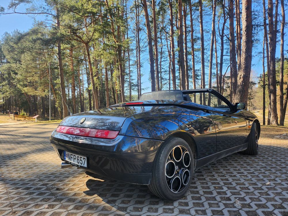 This 1996 Alfa Romeo Spider is a 2-door Italian roadster powered by a 3.0L Busso V6 engine paired with a manual transmission.