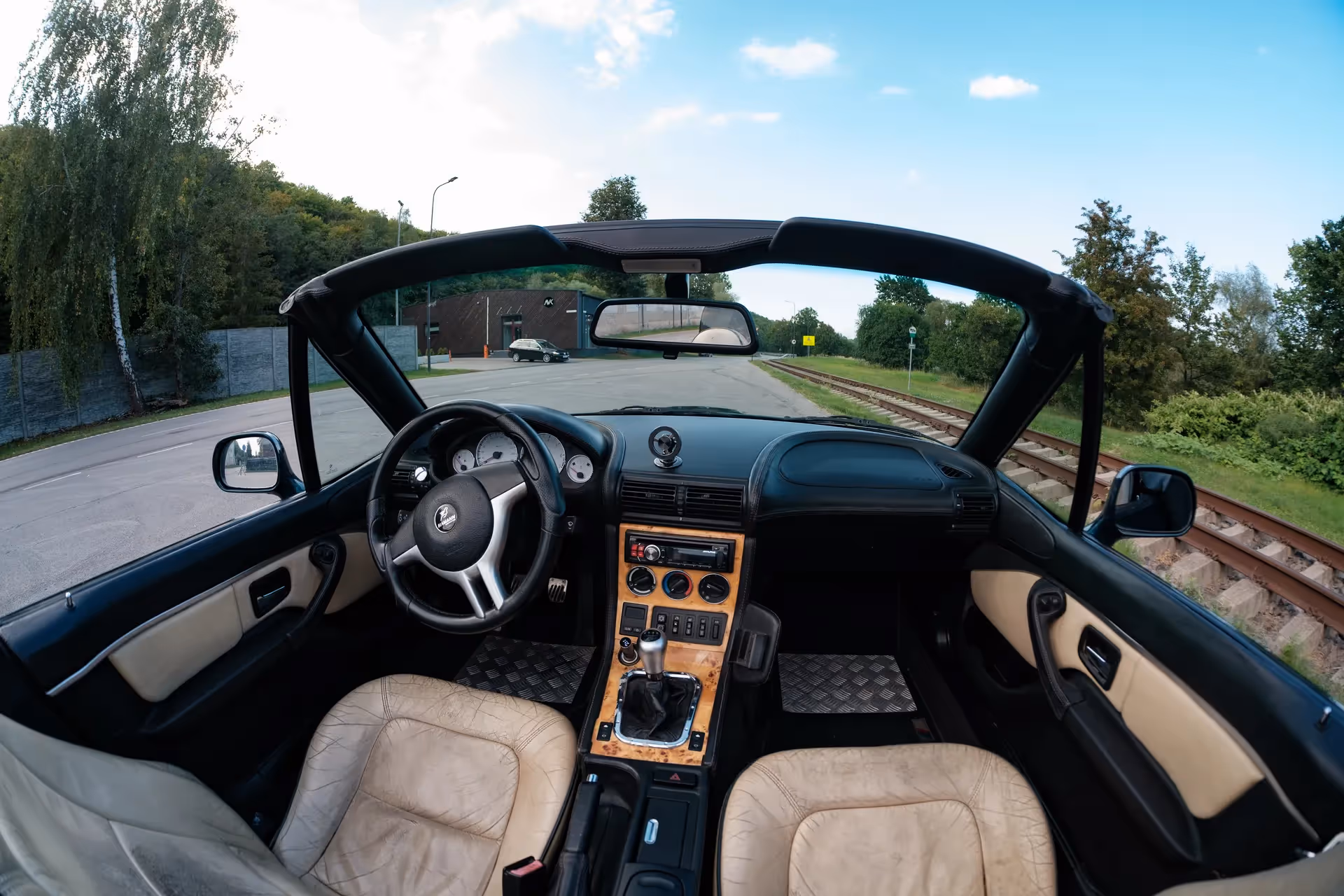This 1998 BMW Z3 is a two-seater sports car that was originally equipped with a 2.8L straight-6 engine that was later swapped to a 3.0L straight-6. This Z3 features an original Hamann tuning package.