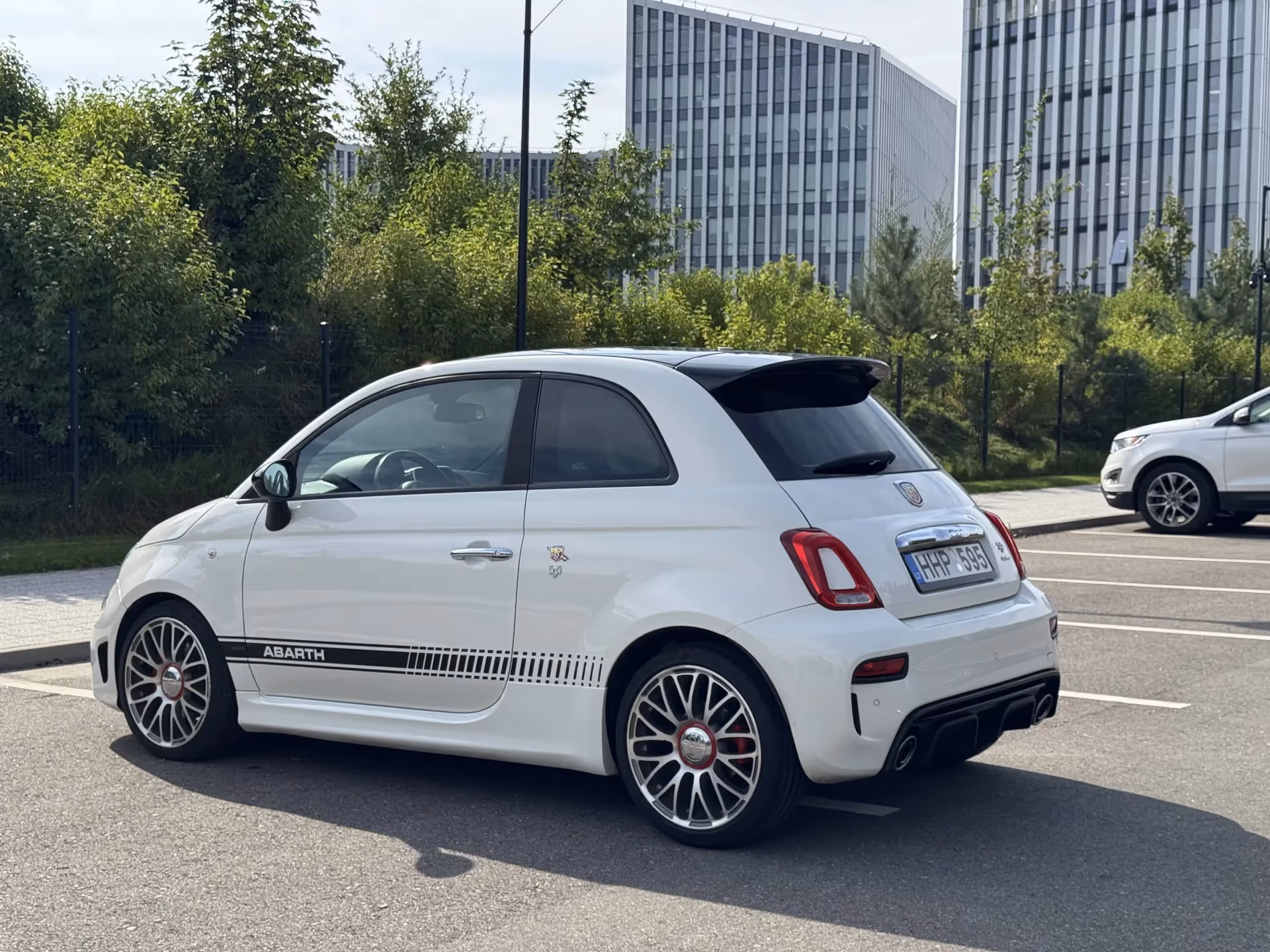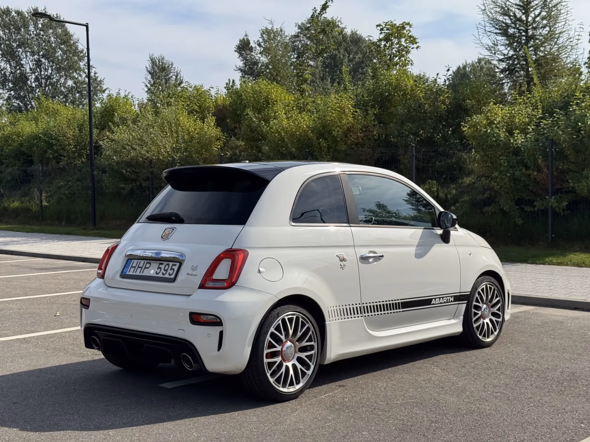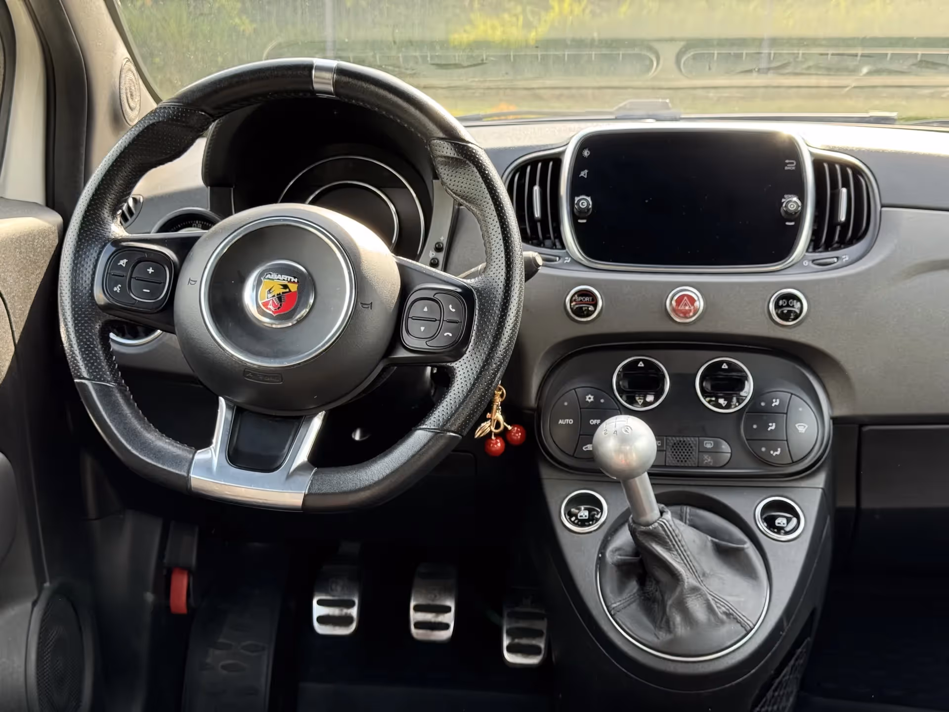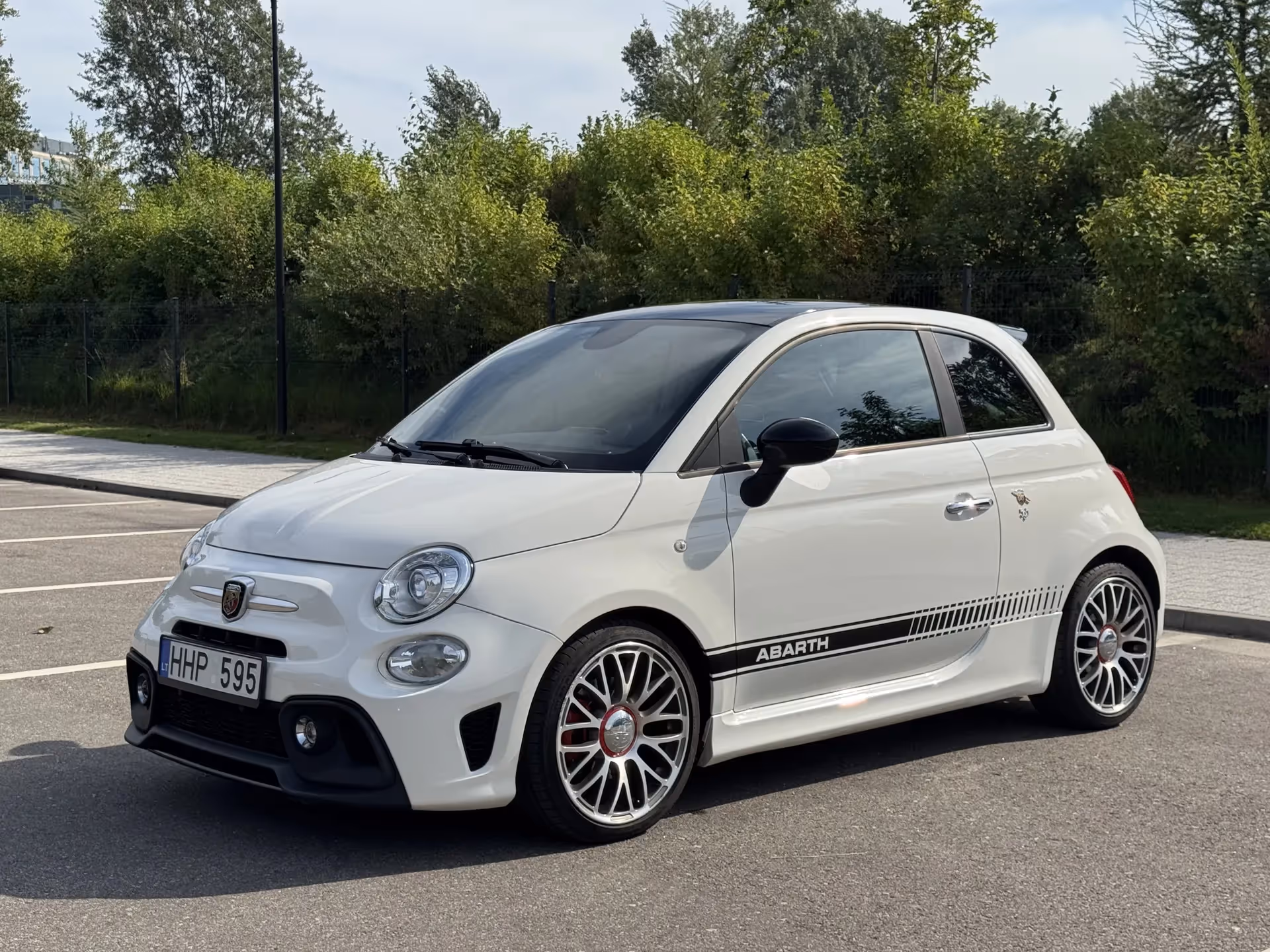 This 2015 Abarth 595 Turismo is a performance version of the Fiat 500, equipped with a turbocharged 1.4L engine and sport-tuned suspension.
