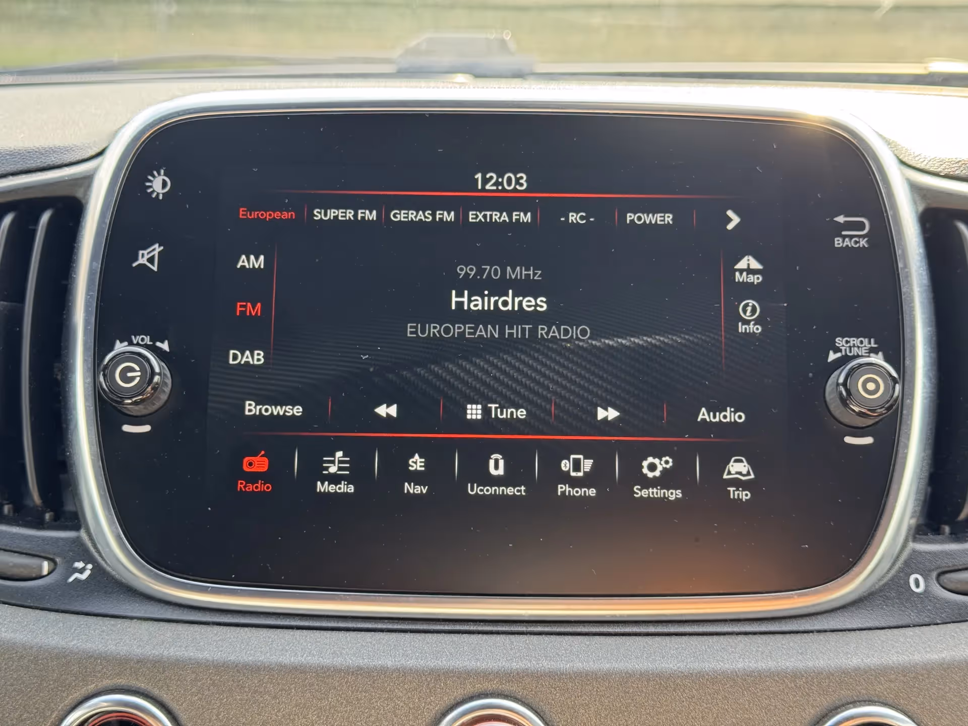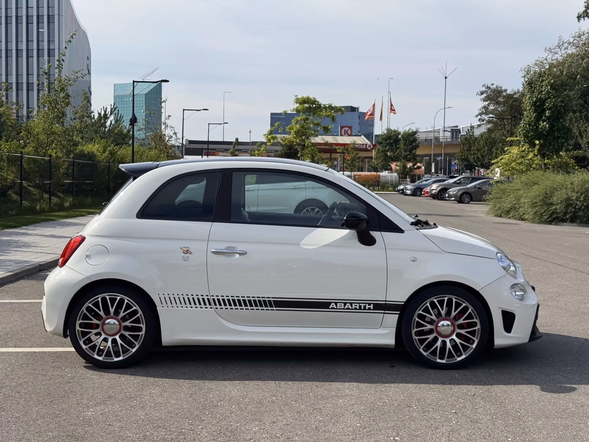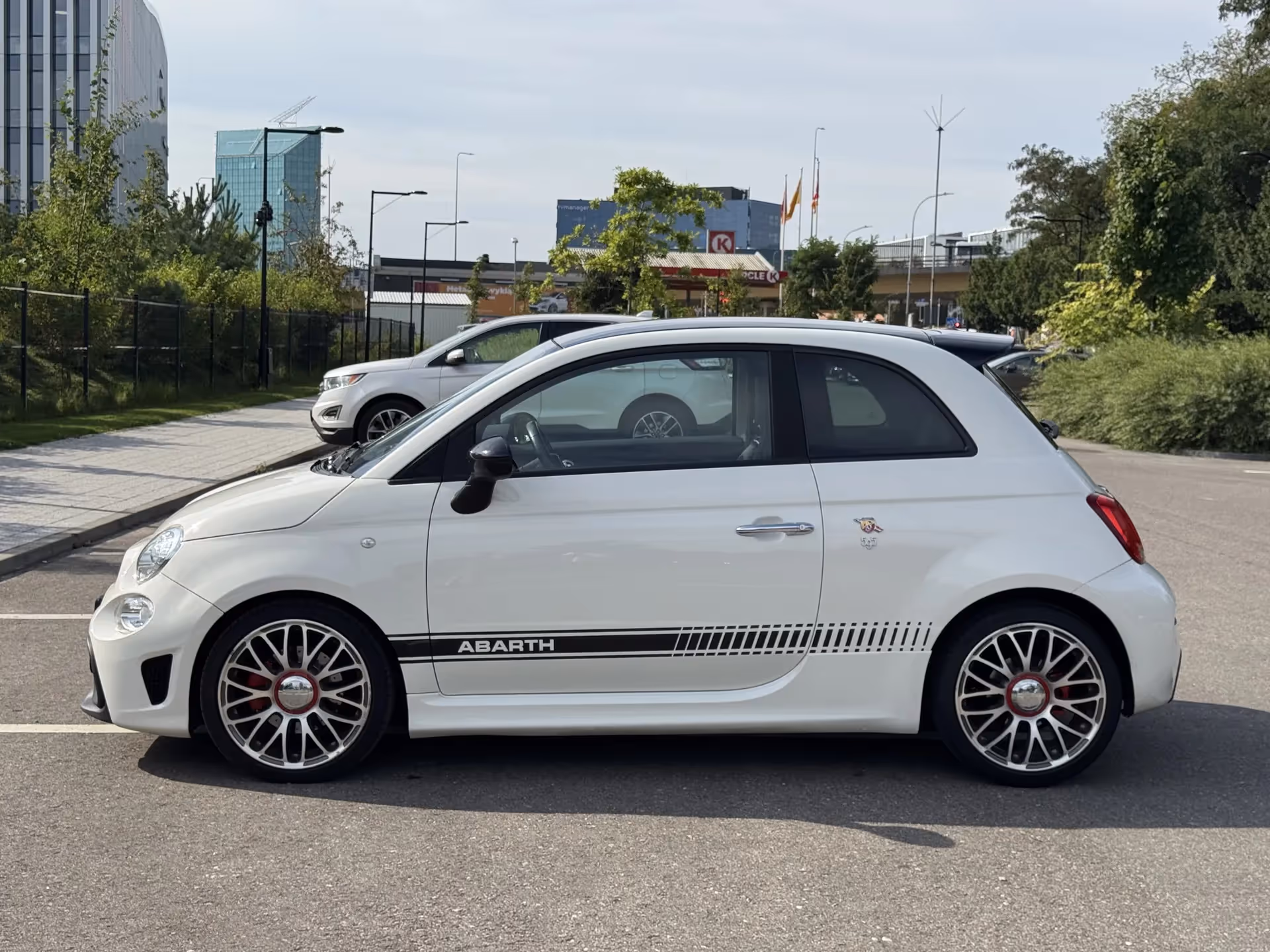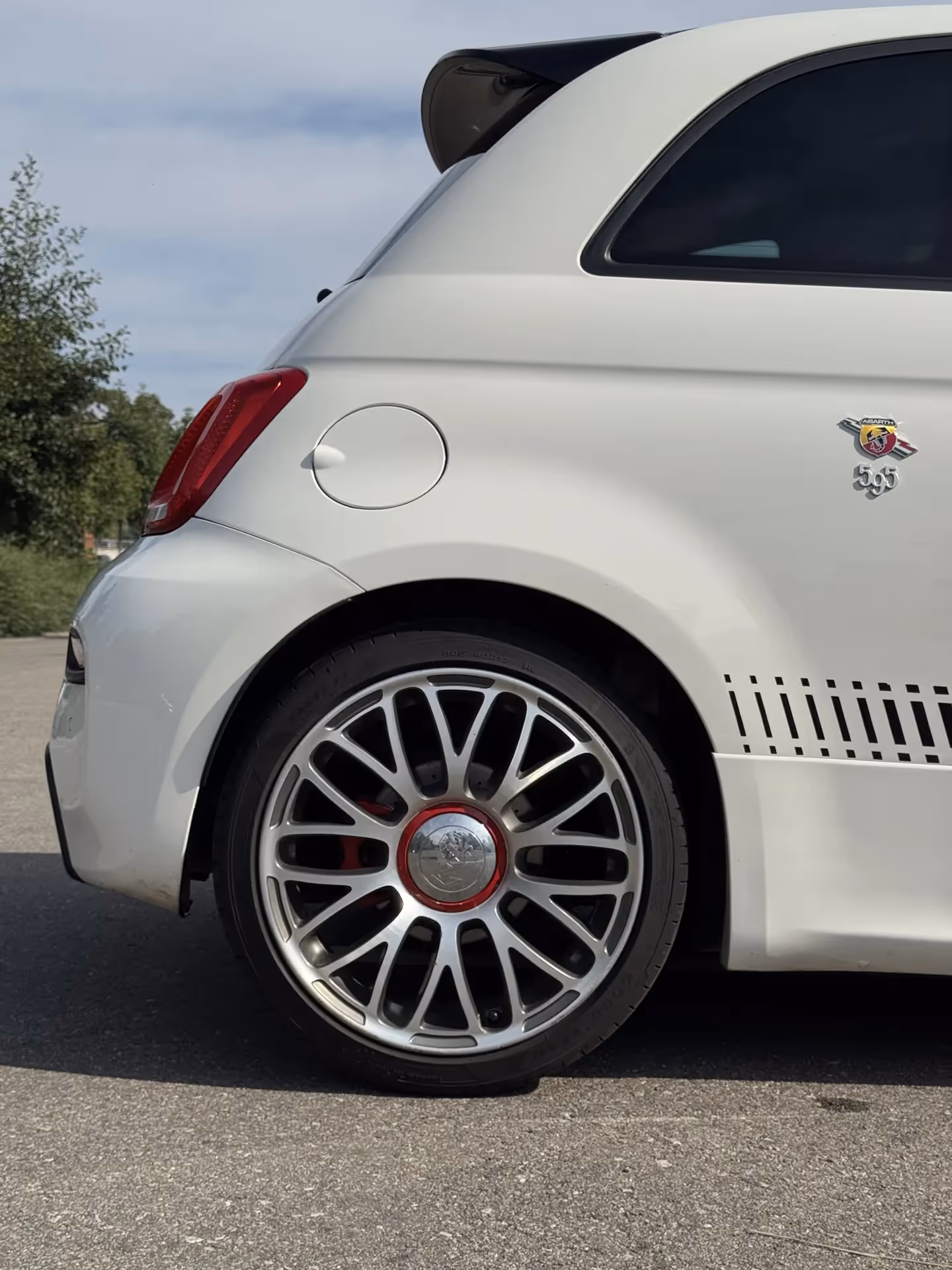 This 2015 Abarth 595 Turismo is a performance version of the Fiat 500, equipped with a turbocharged 1.4L engine and sport-tuned suspension.