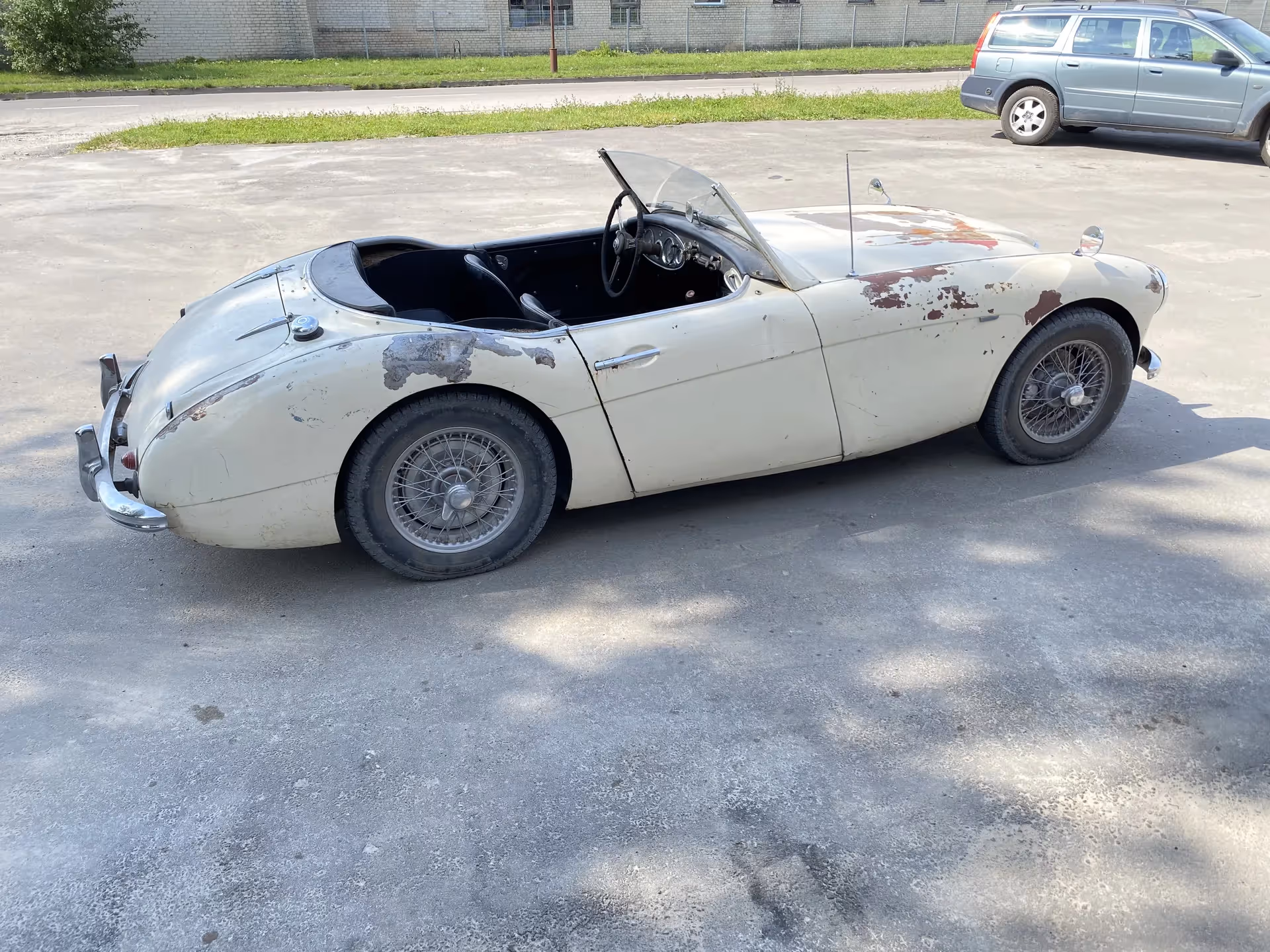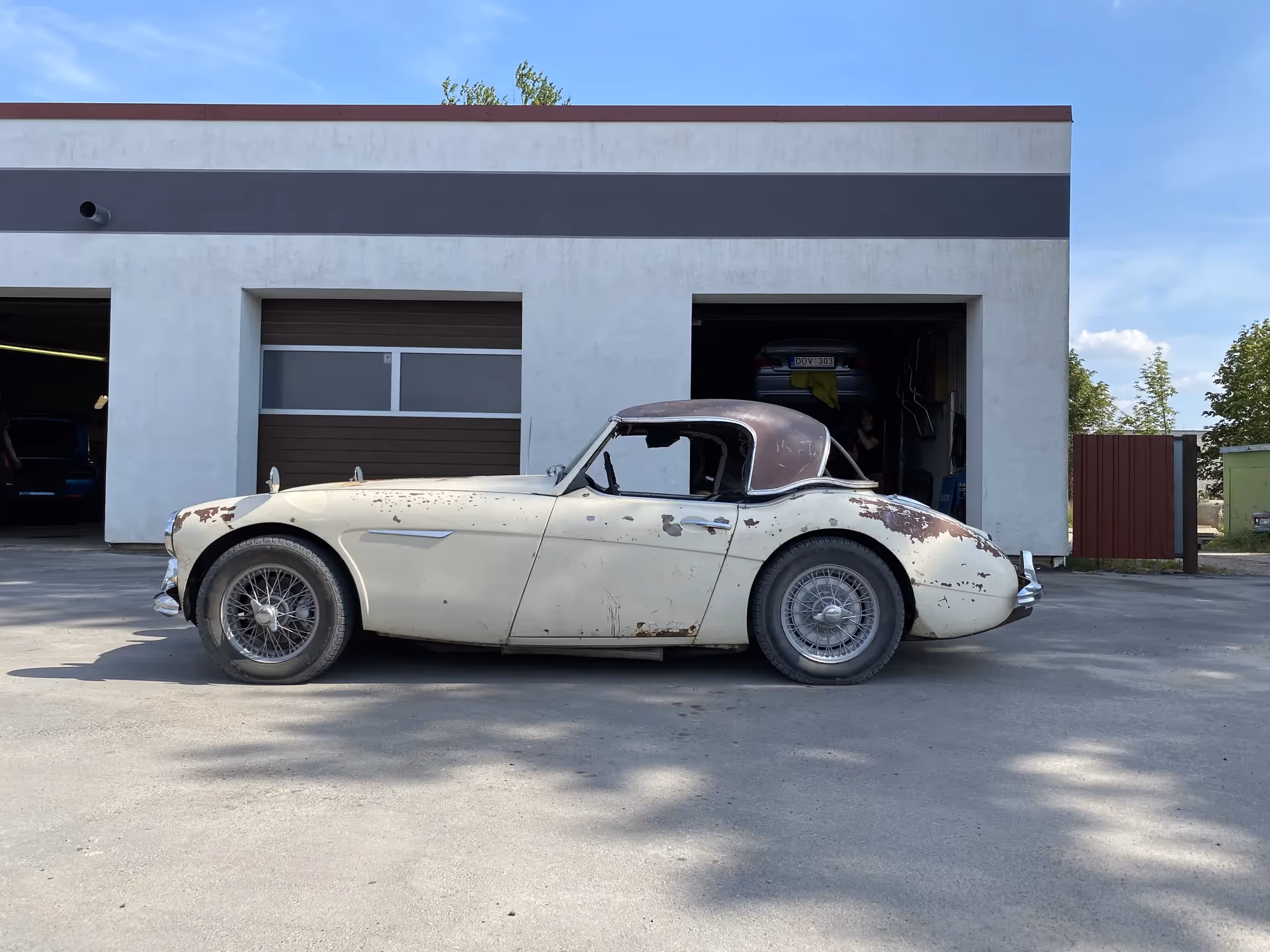 Šis 1961 m. Austin Healey 3000 yra britiškas dviejų durų sportinis automobilis, parduodamas kaip restauracijos projektas su originalia patina ir retu gamykliniu kietu stogu.