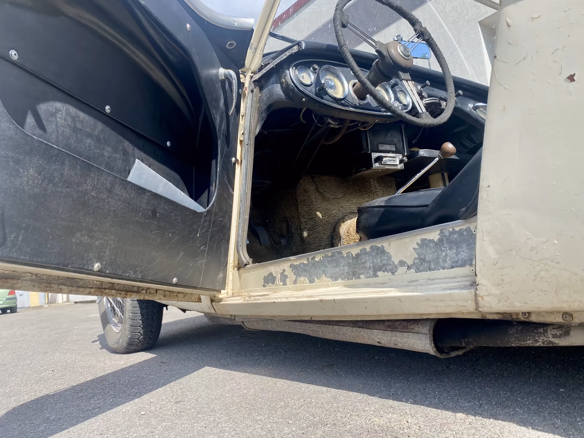 Kėbulas turi dažų nutrupėjimų, įlenkimų ir paviršiaus nusidėvėjimo žymių, tačiau visos pagrindinės kėbulo dalys, įskaitant dugną, yra tvirtos ir be rūdžių. Salonas taip pat geros būklės. Minkštam stogui ir šoninėms užuolaidoms reikalinga restauracija.